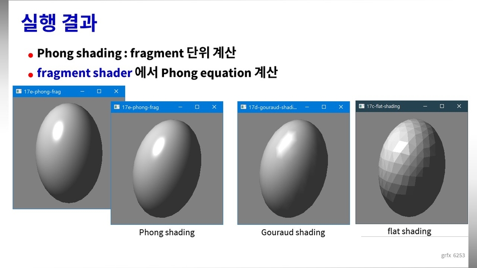이 강의에서는 (6) 셰이딩 수식, 퐁 리플렉션 모델, 퐁 셰이딩 프로그램 에 대한 이론과 실제 코드를 소개 합니다.