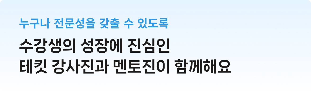 - 수료율 100%, 테킷 운영진의 체계적인 케어 시스템