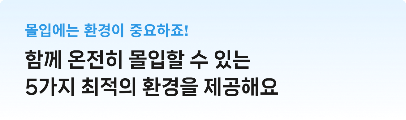 테킷은 여러분이 온전히 몰입할 수 있도록 함께 성장하기 위한 5가지 최적의 환경을 제공해요.