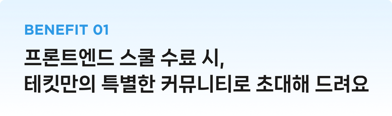 테킷 프론트엔드 스쿨 통해서 고민을 해소하고 끝까지 완주 할 수 있어요!