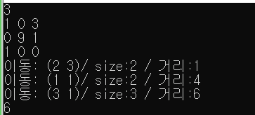 만약 맵이 위의 사진과 같다면 size가 3이 됐을때 (1,3)에 있는 크기 3토끼를 먹으러 갈 수 있게 되어서 답이 6이상이 나오지 않나요..?