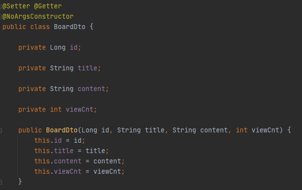 controller의 form을 만들 때에도 setter를 쓰는것이 좋지 않은 방법인가요?
