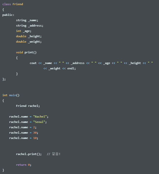 2. 구조체도 클래스와 똑같아요. 구조체 정의는 클래스 정의와도 같고 구조체 생성하는 것은 객체 생성과도 비슷합니다. 그냥 클래스와 비슷하게 생각해주시면 됩니다.