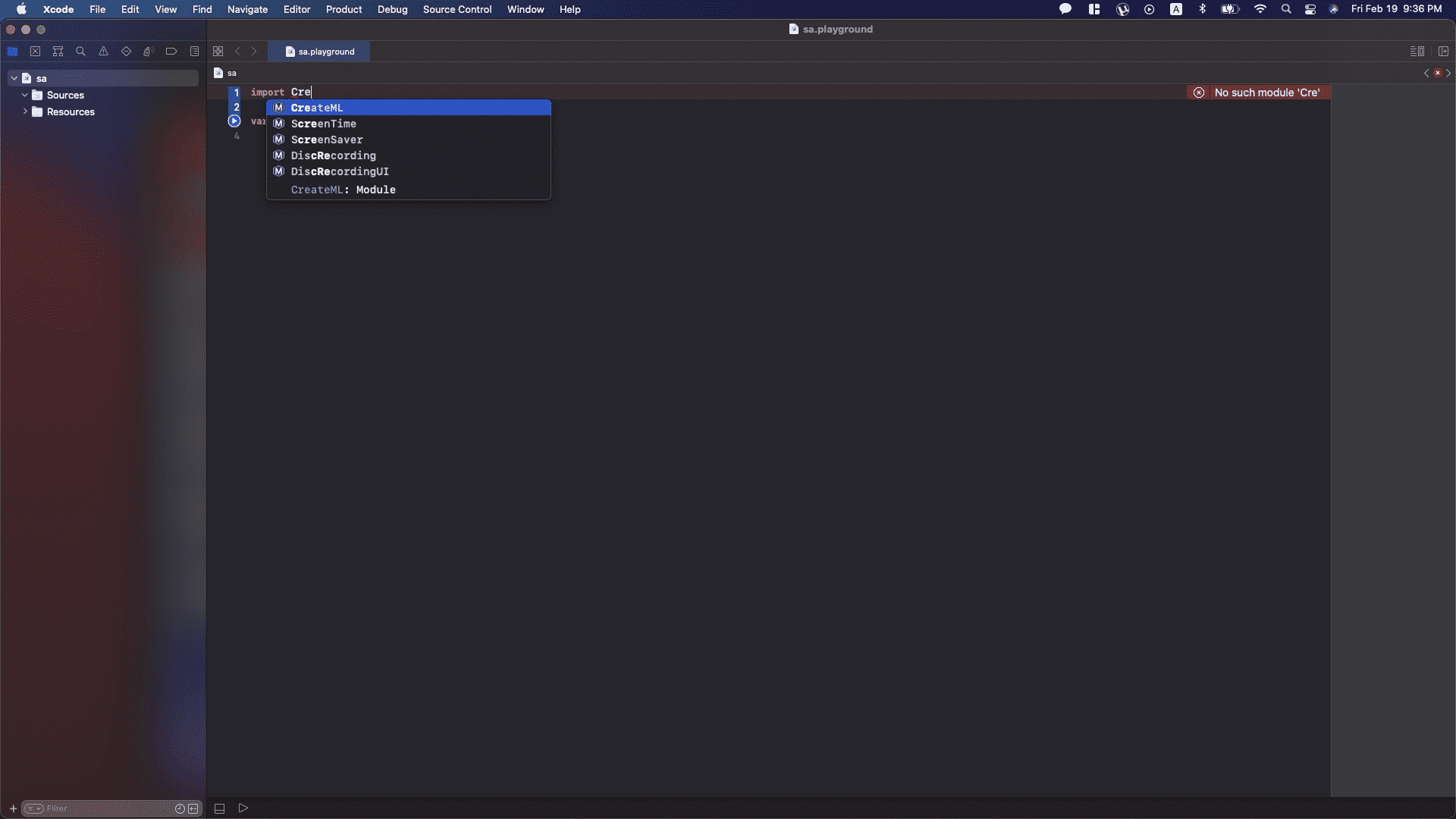 ML강의 시작부분에서 CreateMLUI를 찾을 수가 없습니다.