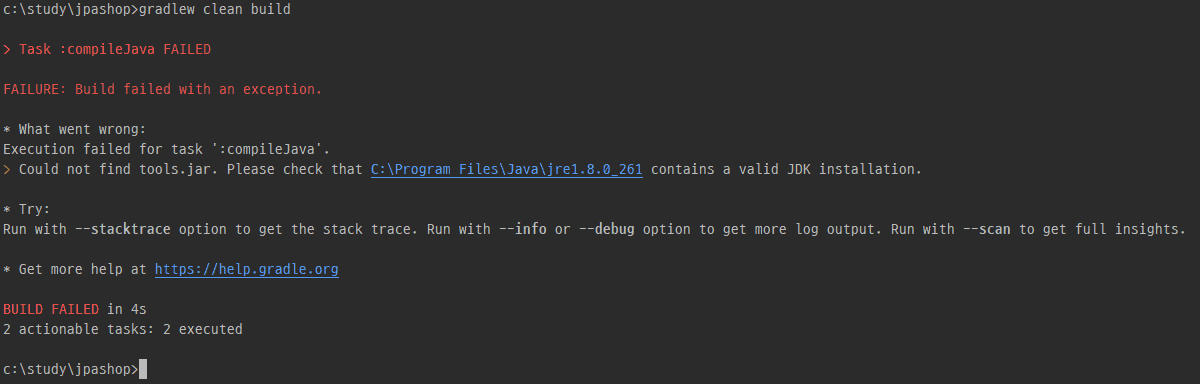 gradle clean build 오류 문의 드립니다.