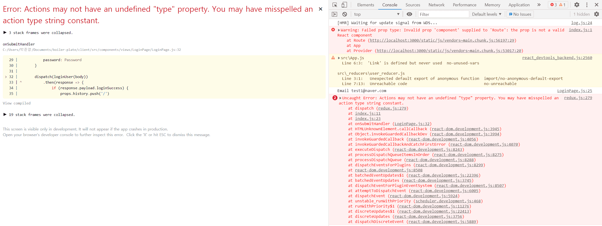 선생님 Action 타입이 잘못 입력되었다는데 해결을 못하겠습니다...Action may not have an undefined "type" property
