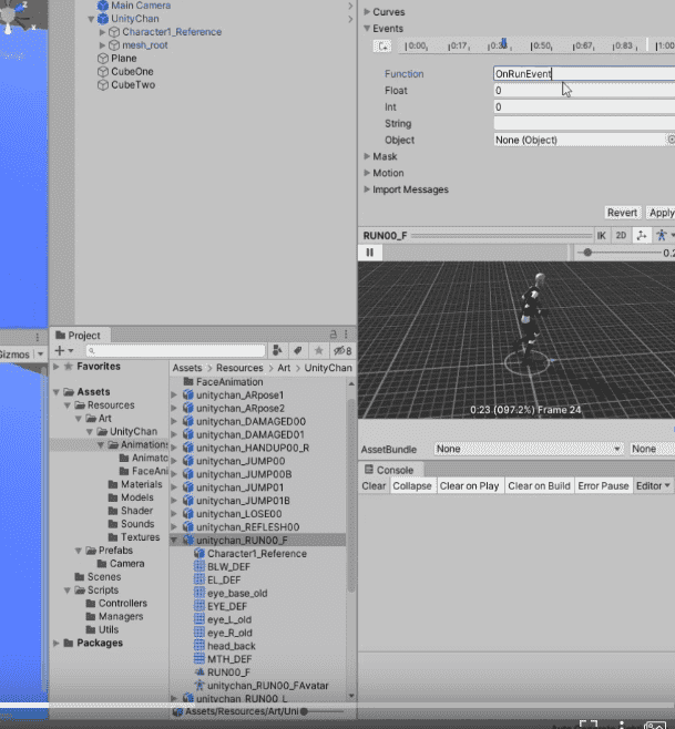 강의에서처럼 애니메이션이 포함된 RUN00_F을 누른 상태가 맞을까요?