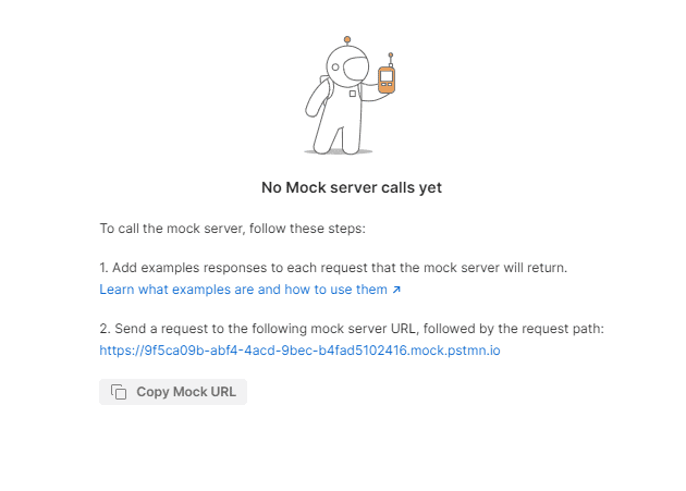 안녕하세요! 우선 mock server는 잘 생성된 것처럼 보입니다! example response까지 등록한 후 진행해보셨을까요?