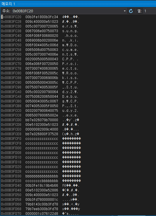 저는 14:54초 쯤의 temp 메모리를 확인하는 부분에서