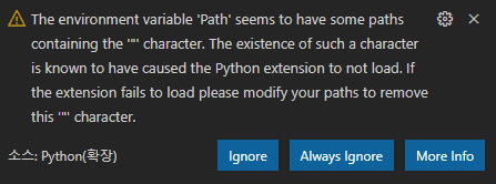 vscode에서 블렌더를 실행하면 오류가 뜹니다