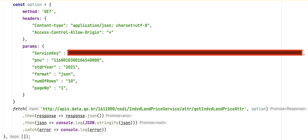 서비스키를 재발급 해봐도 안되고 밑에처럼 fetch를 사용해봤는데도 안됩니다.