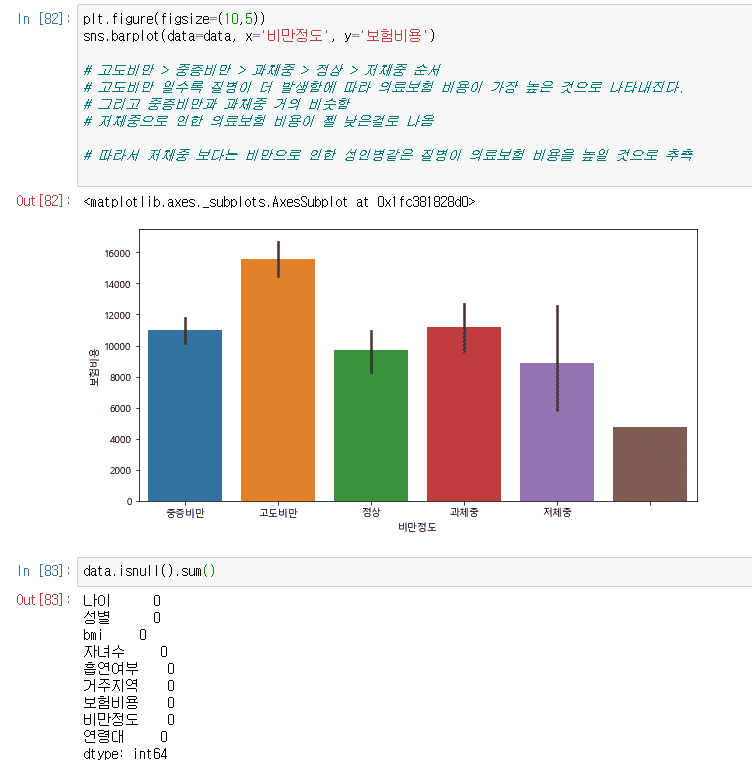 그리고 비만정도를 제가 bmi값으로 분류했는데 비만정도에 입력이 안된 값을 찾아보려고
