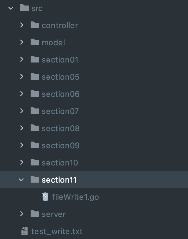 file, err := os.Create("test_write.txt")처럼 하였는데 파일이 section11 하위가 아닌src 하위에 생기는건 어떤 문제가 있는건가요?저는 jetbrains의 goland 를 사용하고 있습니다.IDE 툴의 특성일까요?