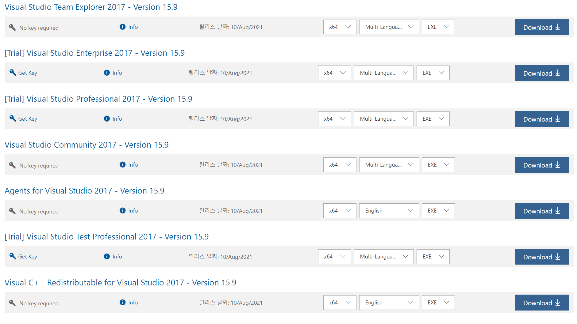 위와 같이 너무 다양한 버전들이 있어서 뭘 다운받아야 할지 모르겠어요. 그래서 일단 2019로 다운받았는데 문제가 될까요? 그리고 어떤 버전을 다운받아야 하는지 알려주시면 감사하겠습니다.