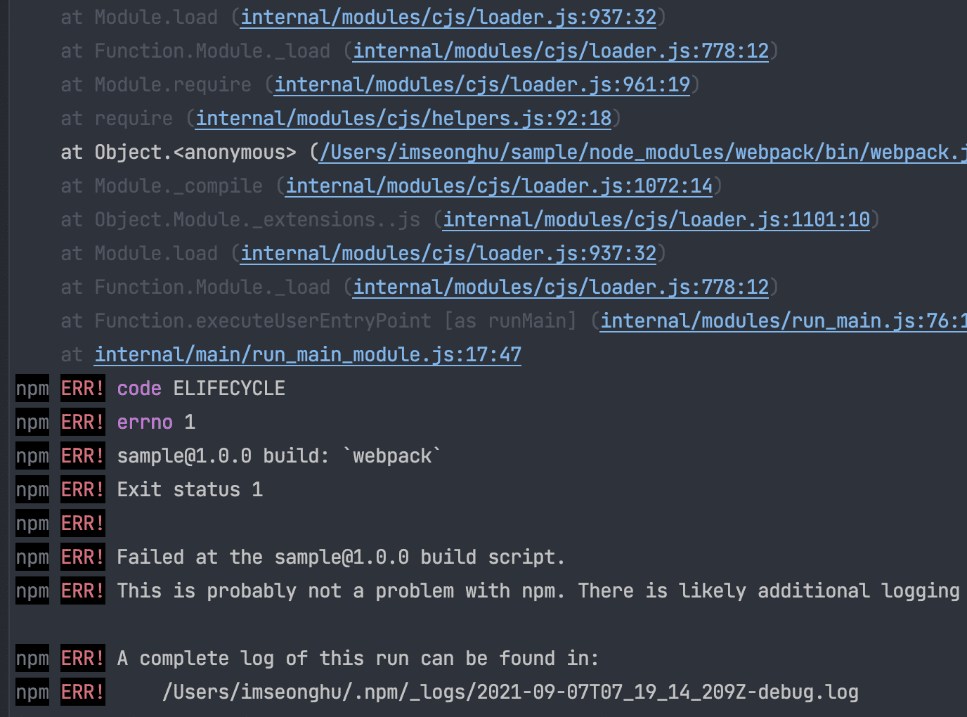 HtmlWebpackPlugin 설치 후 npm run build 시 에러 발생할 때 대처