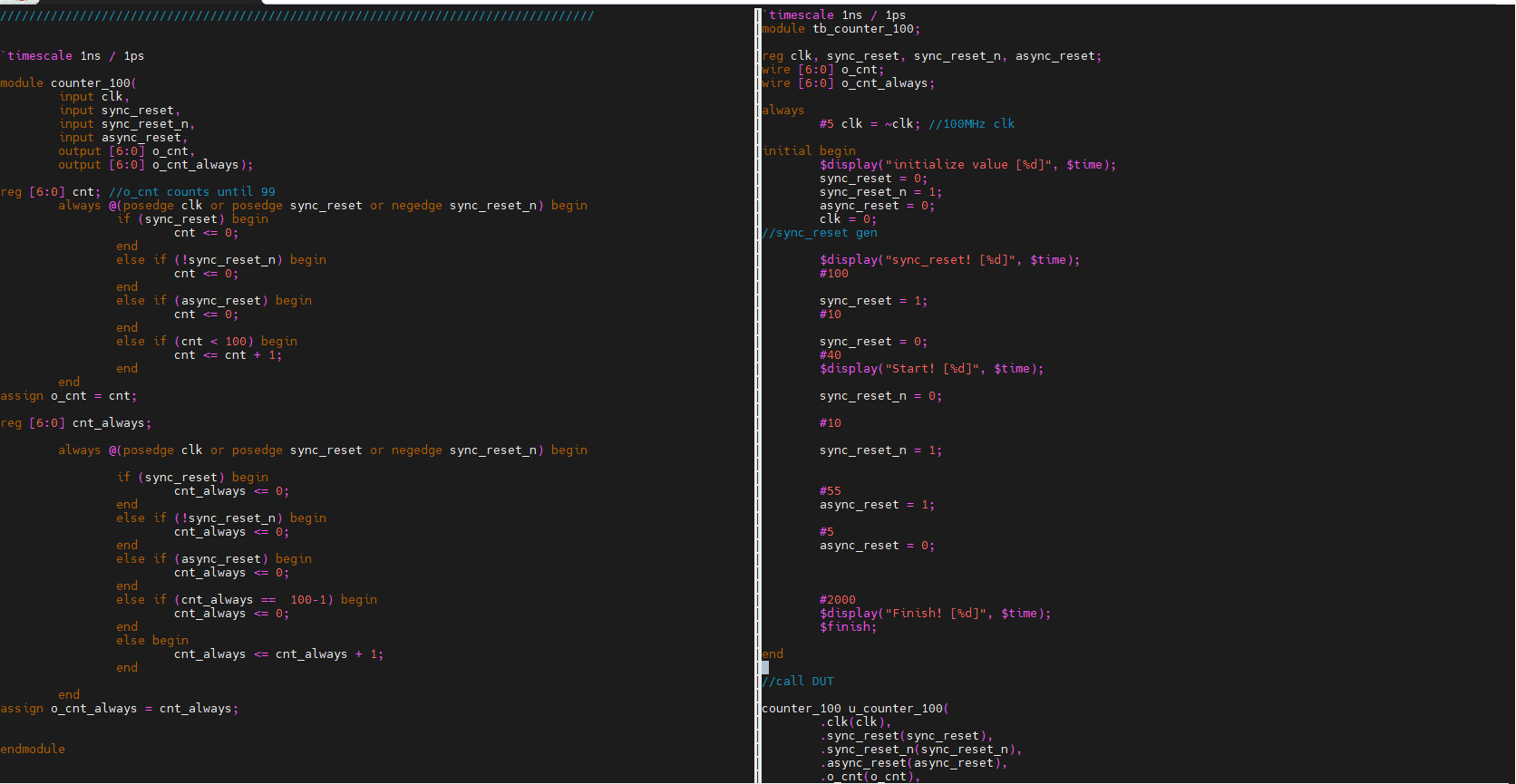 안녕하세요 선생님, sync reset이랑 async_reset기능을 추가해봤는데 테스트 벤치가 잘 돌아가긴 하는데 코드가 맞나 2차 점검 부탁드립니다