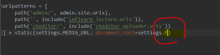또한, 강사님과 다르게 저는 MEDIA_URL과 MEDIA_ROOT 작성 시 자동으로 표시되는게 나오지를 않는데 그 부분이 혹시 문제인건지도 문의드립니다..!ㅠ