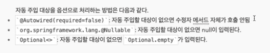 네, @Nullable과 자바 8의 Optional의 경우, 주입 대상이 없더라도 호출이 가능합니다.