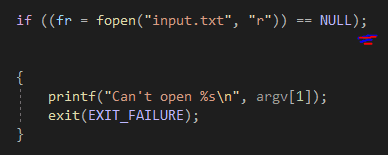 if ((fr = fopen(argv[1], "r")) == NULL);