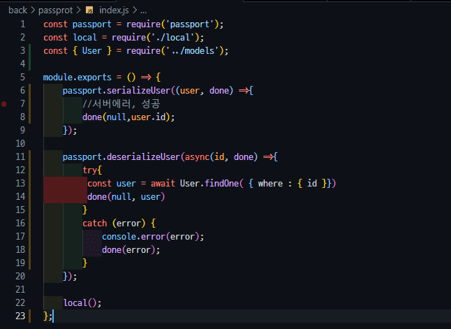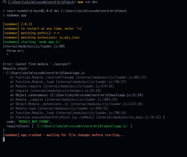 서버를 실행 시키면 ./passport 를 찾을 수 없다고 뜹니다