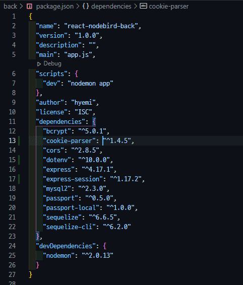 지금 백엔드 노드 서버로 구축하기에서 패스포트로 로그인하기, 쿠키/세션 전체 로그인 흐름 이쪽 강의를 듣고 있는데
