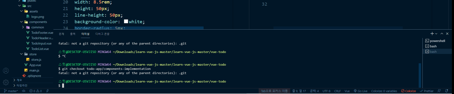 상기 화면처럼 not a git repository라고 나오는데요 저번에 승인 받았고 로그인 한 상태에서 진행했는데 왜 저렇게 나오는걸까요?