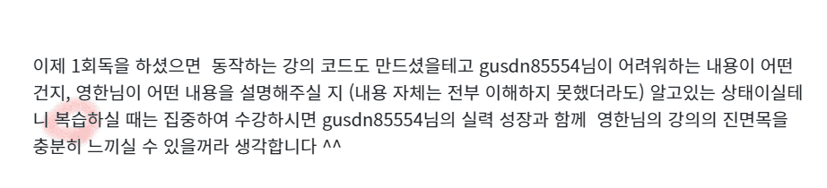 저도 수강평이나 수강생분에게 말씀 드릴 때 복습의 중요성을 얘기해드리곤 합니다.