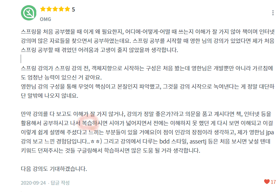 SpringDataJPA와 QueryDSL도 명강의이니 수강하실 예정이라면 기대하셔도 좋습니다!