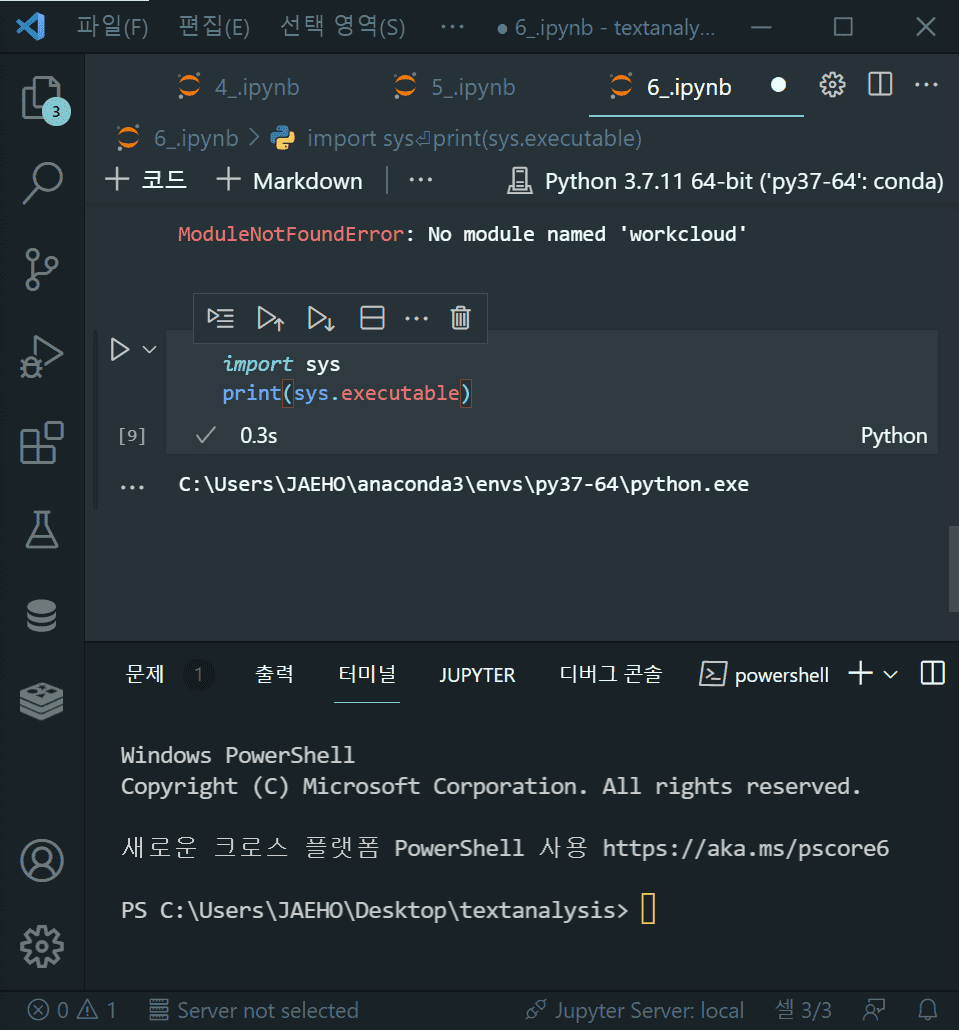 강의대로 conda pip으로도 다 해봤는데 설치는 됬는데 modulenotfounderror가 뜨네요..