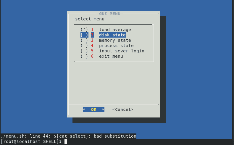 menu 쉘 스크립트 실행 시에는 아래와같이 bad substitution이 뜹니다.
