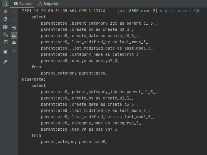 쿼리가 두번씩 나가고 있는데.. 조인이 걸려 있거나 그런 entity 조차도 아닌데 원인을 잘 모르겠습니다. ㅠㅠ