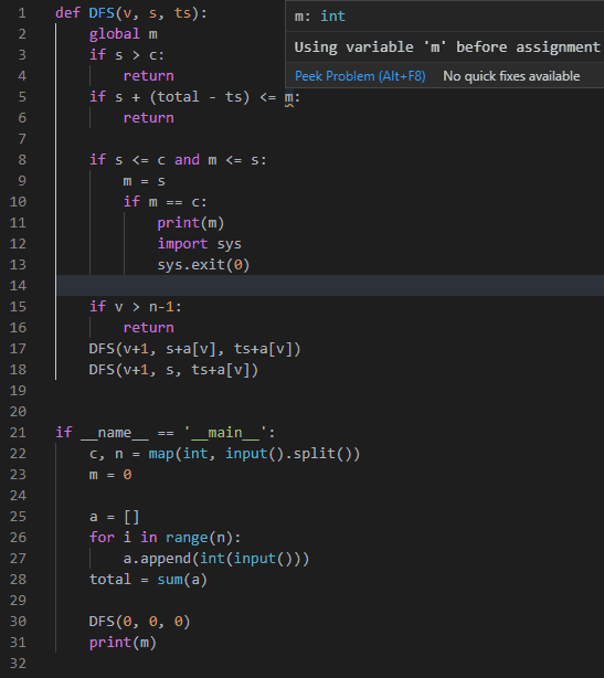그런데 1번사진에서는 글로벌 키워드를 사용하였는데도 변수 m이 할당되기 전에 참조되었다고 IDE 에서 에러 메세지가 뜹니다. (둘 다 실행해보면 통과는 합니다.)