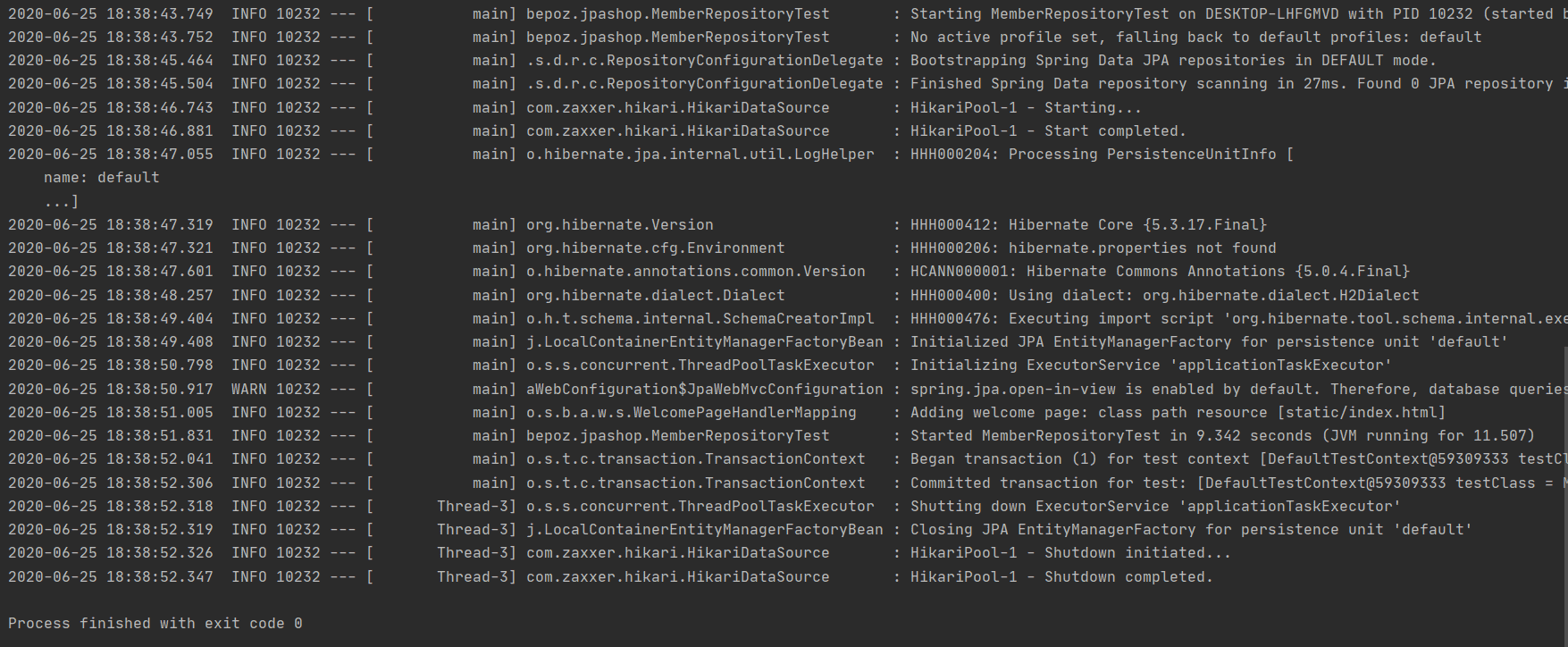 p6spy 를 넣으니깐 그 로그 사이에서는 나왔습니다. 이것이 없을 때에는 왜 안나올까요...