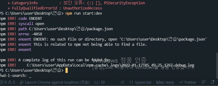 package.json이 없는 경로에서 실행하신 것 같습니다! 올바른 프로젝트 경로에서 실행해주세요!
