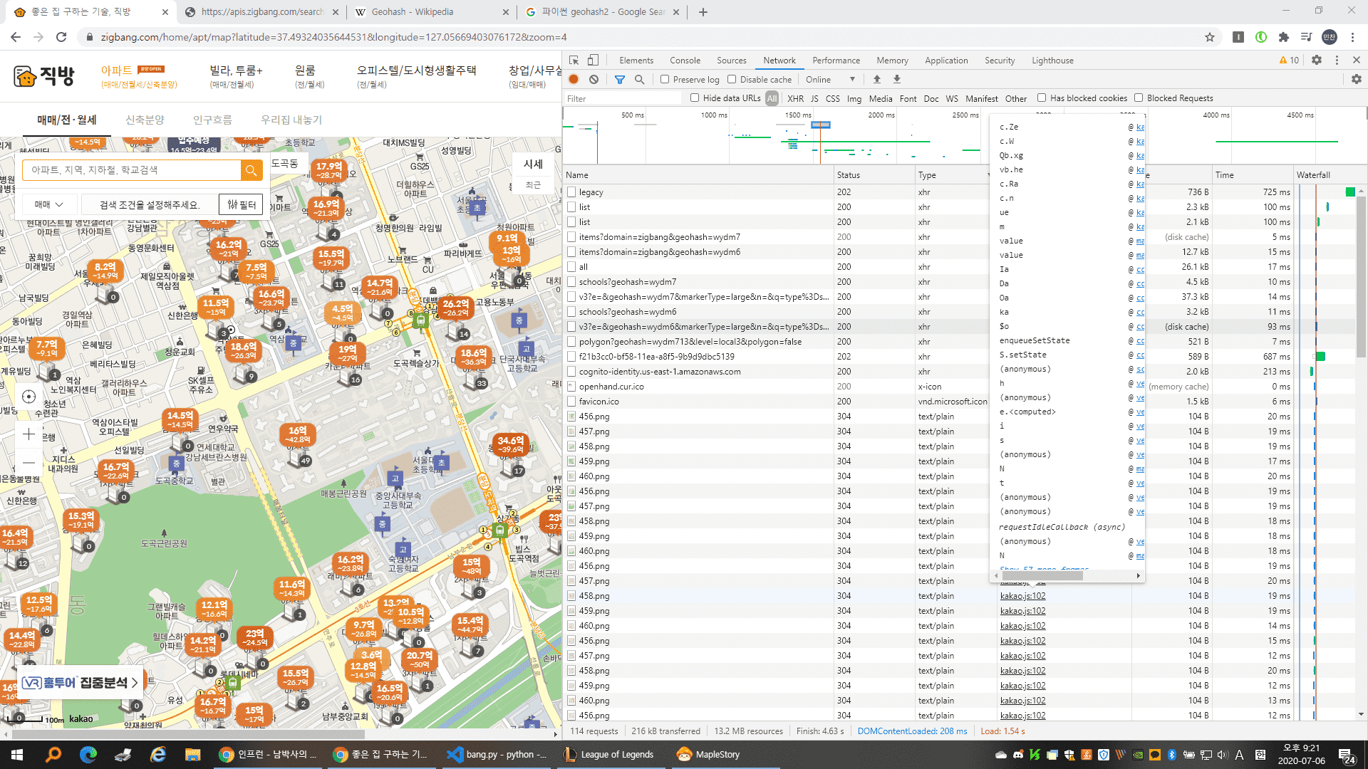 예전 api 의 주소들은 모두 외부로 노출되어있지만 리뉴얼된 사이트에서의 몇몇 api 주소는 답변드린것과 마찬가지로 js 파일 내부에서 문자열 조합에 의해 주소가 만들어지는 방식을 채택한것 같습니다. 그래서 몇몇 api 주소는 외부로 노출이 되지 않습니다.