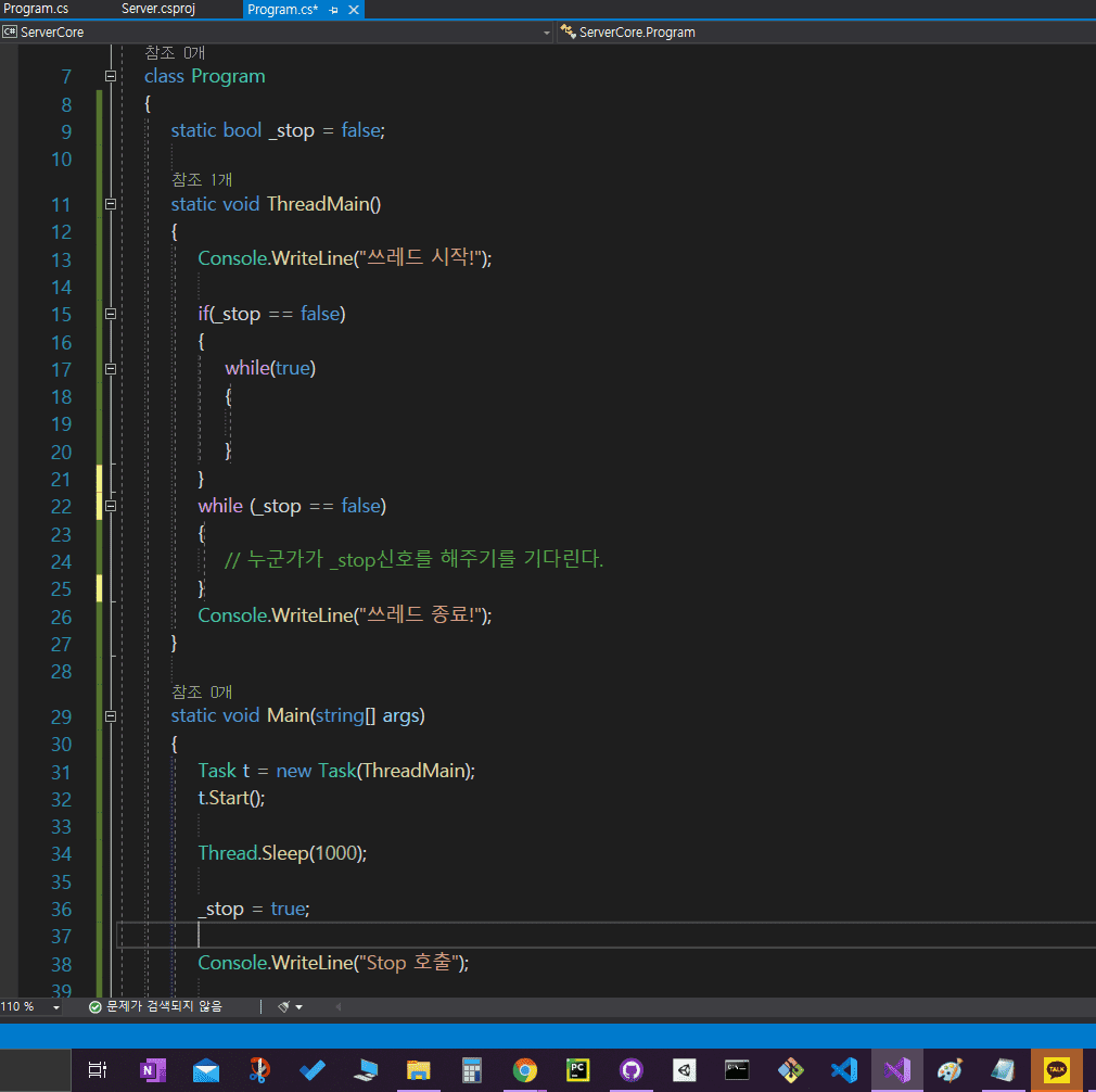 우리는 ThreadMain 쓰레드가 아닌 Main Thread에서 _stop을 = true로(공통으로 접근이 가능하기에) 바꿔주려고 하는데 이부분에 곂침? 꼬이는 현상이 발생을 하기에