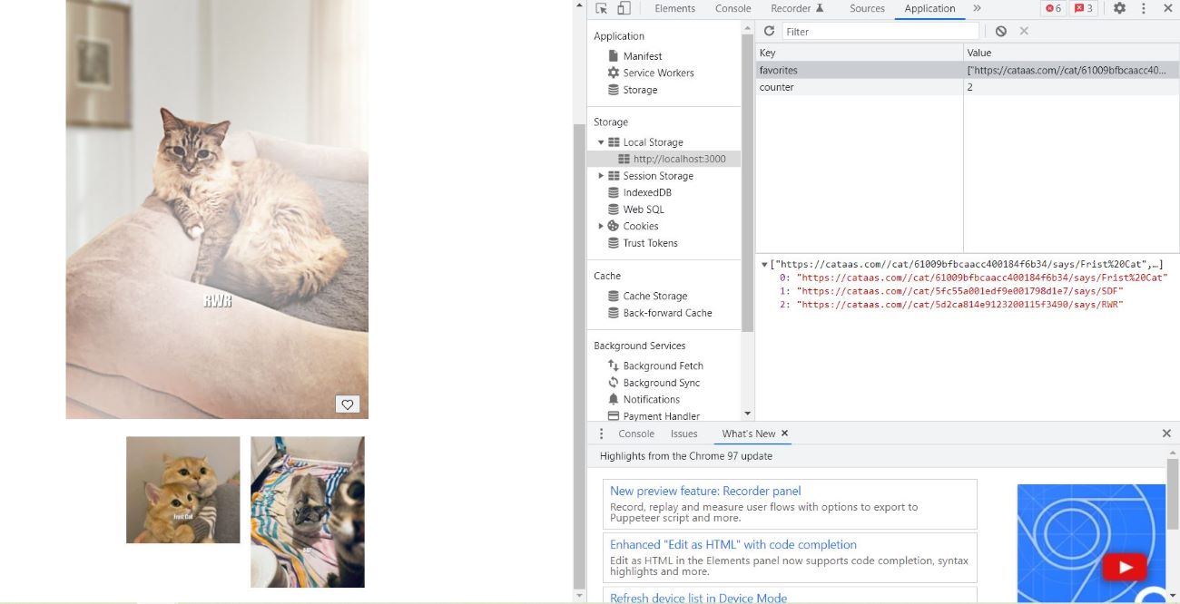 우리는 고양이 이미지를 'favorites'라는 키값에 value를 배열로 저장했었어요.