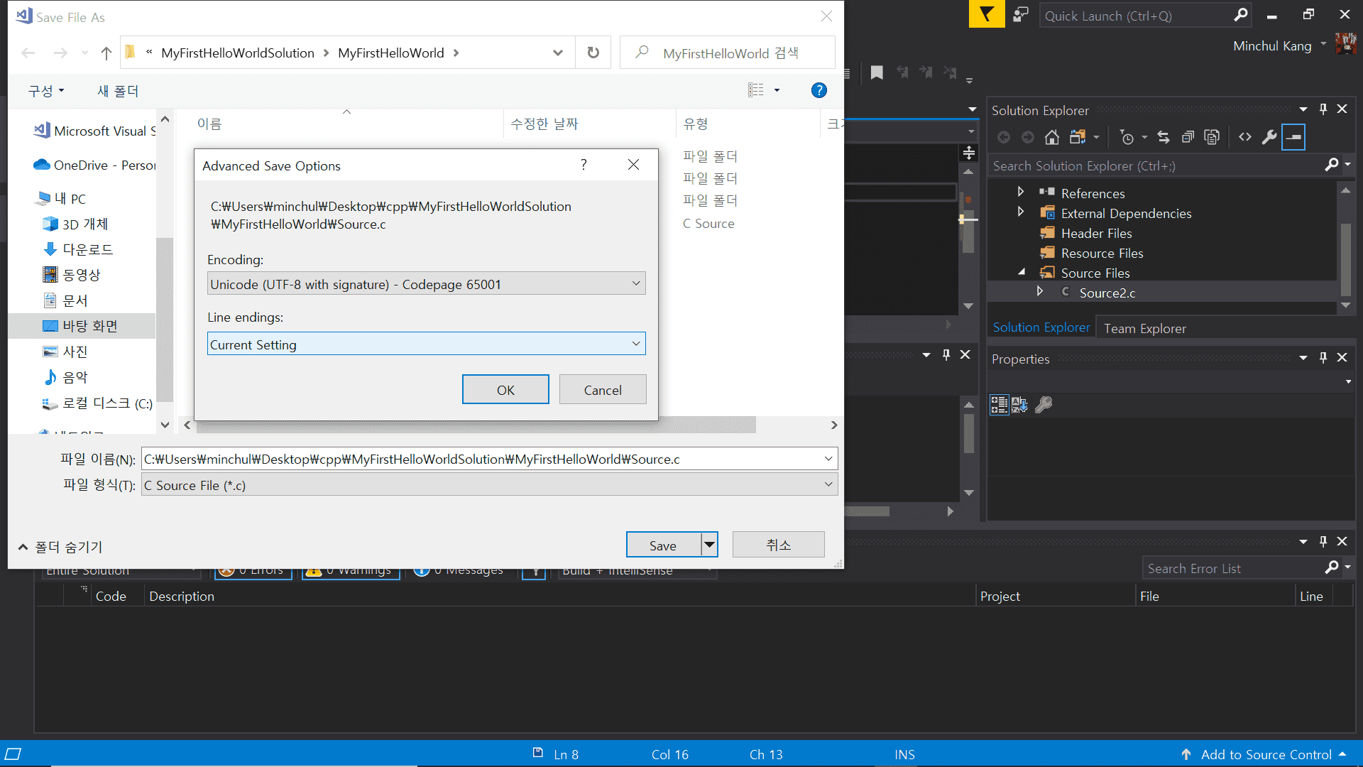 그리고 여기서 Unicode (UTF-8 with signature)를 선택하신 뒤 저장해주세요.