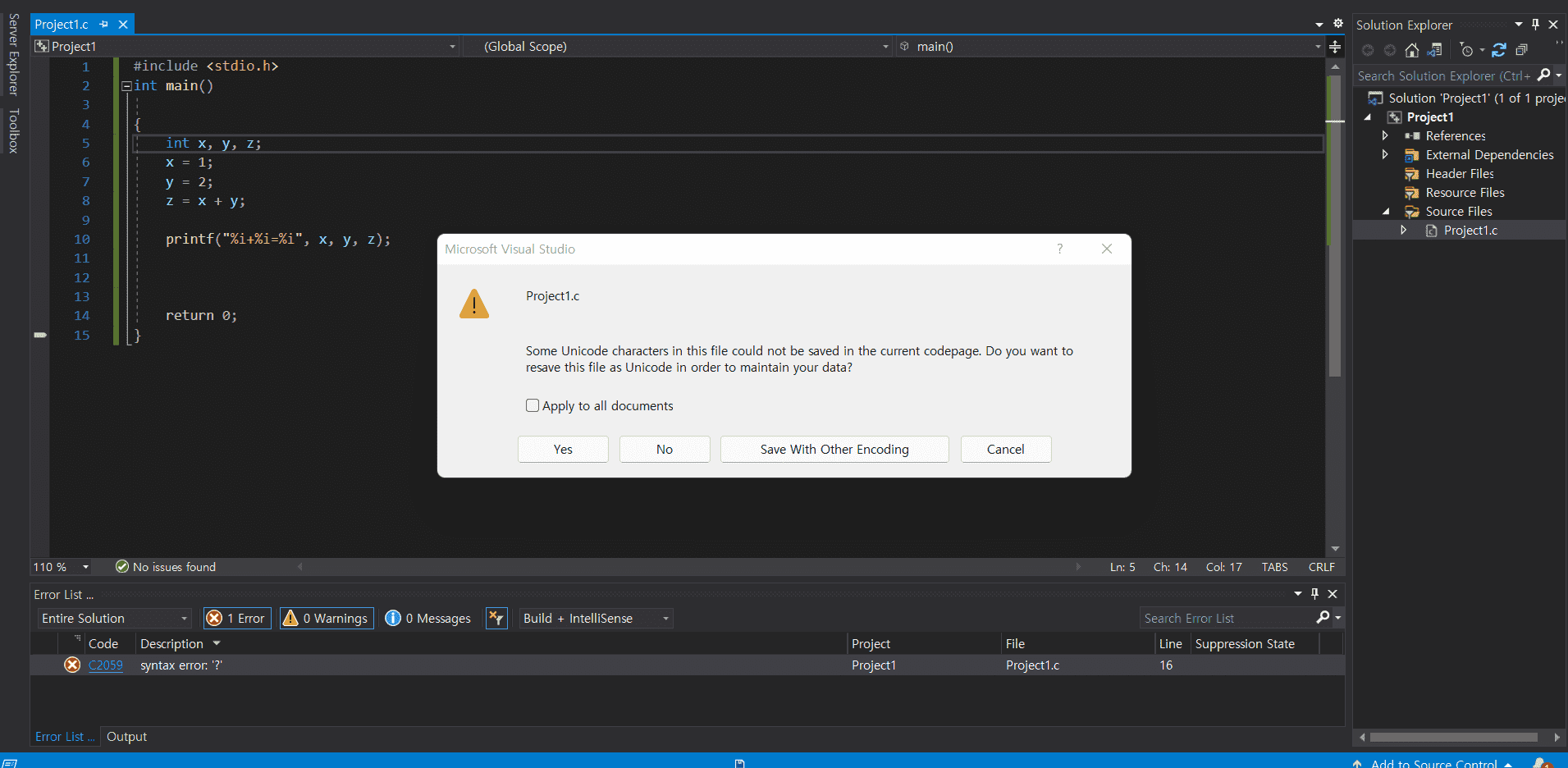 코드가 실행되지 않는데 어떻게 해야 할까요? visual studio를 재실행하고 파일도 다시 만들었는데도 계속 저 문구가 나옵니다!