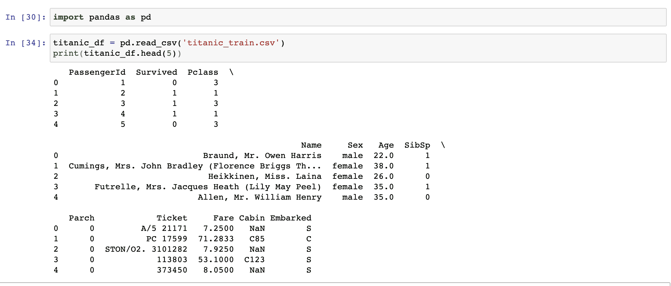 주피터 노트북 셀에서 맨 마지막에 있는 코드는 print 문을 적용시키지 않으면 html의 테이블 형식으로 자동 변환됩니다. 단 셀의 맨 마지막 행에 해당될때만 적용됩니다