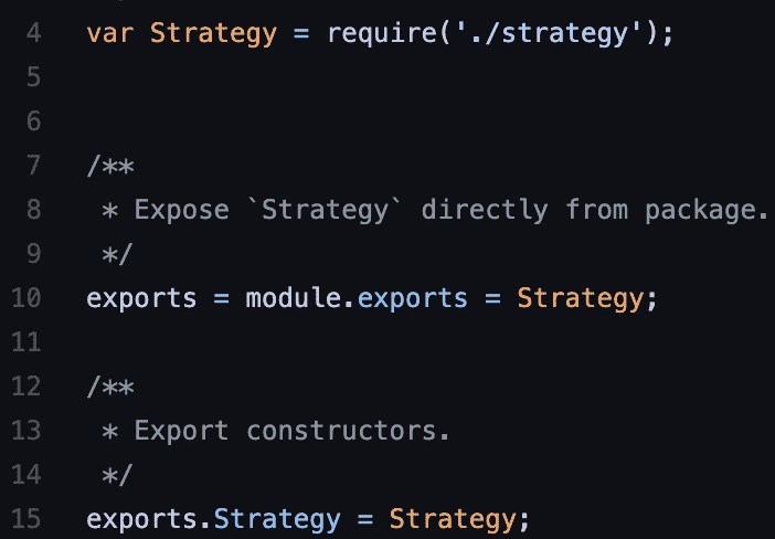 passport-local의 깃헙입니다. require에 .Strategy를 붙이나 안붙이나 똑같아 보이는데 원래는 15번째 줄만 있었는데 의존성때문에 수정하지않고 10번째 줄을 추가해 결국 같은건가요?