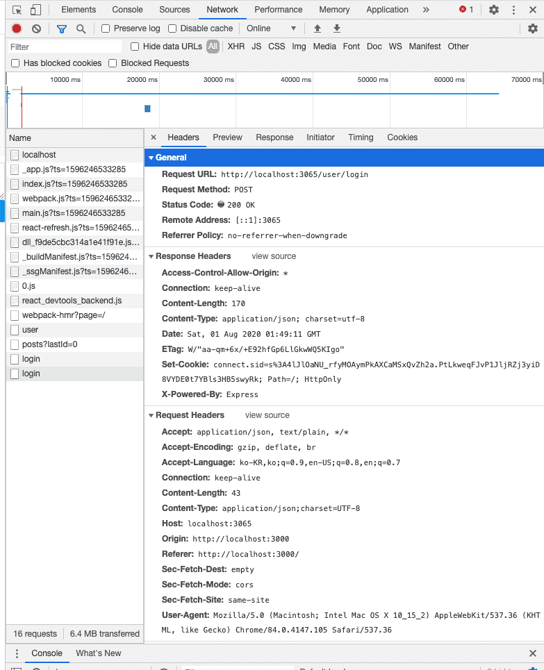 위의 파일들이 에러가 예상되지만 backend 쪽 인증관련 에러로 보입니다.