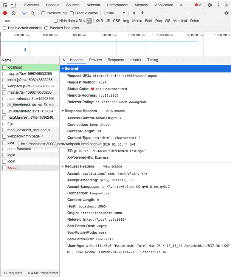 브라우저 로그아웃 에러