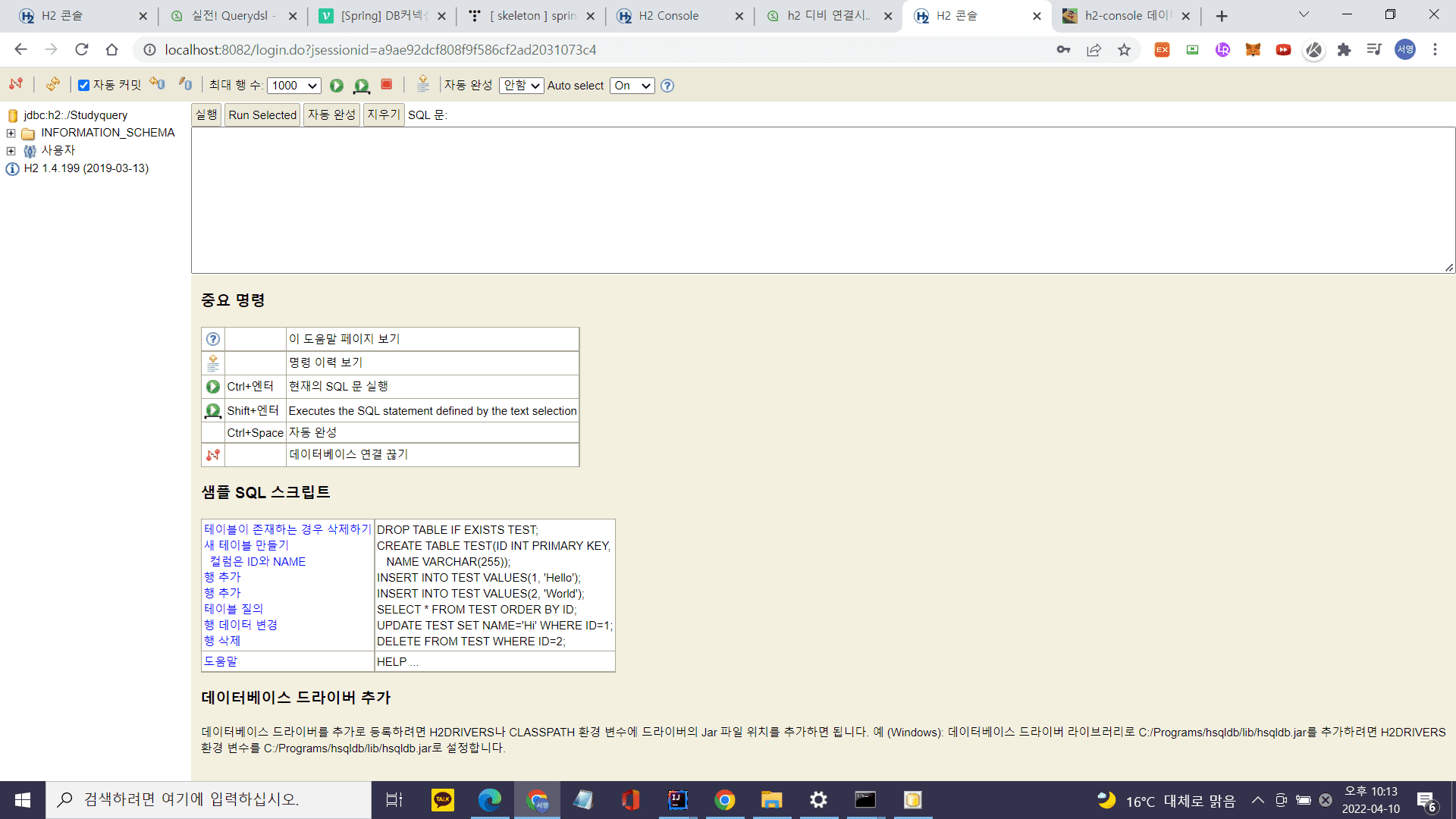 생성 위치는 c드라이브/users/JSY 이며, 파일명은 Studyquery.mv.db입니다.