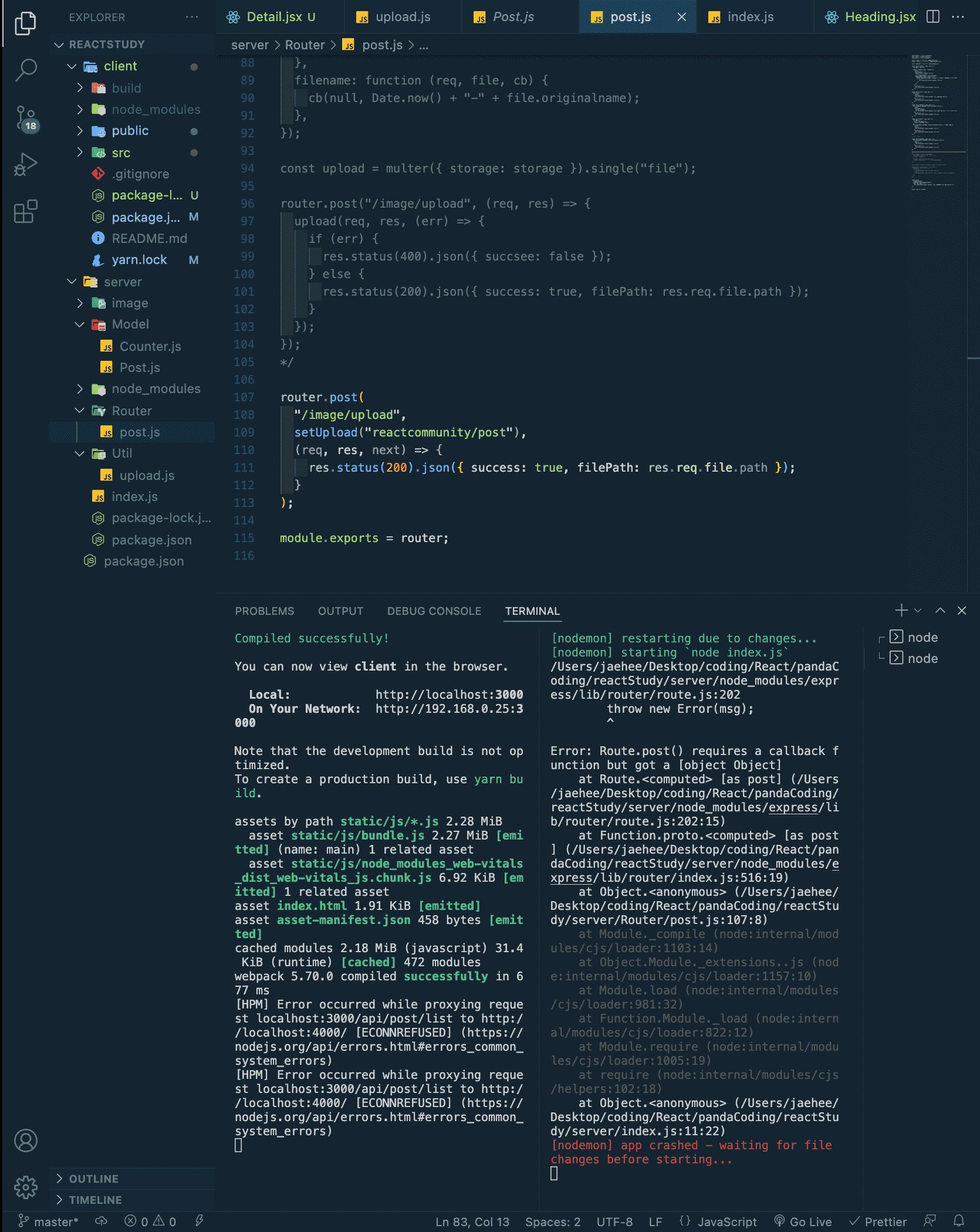 multer에서 file을 하나만 받을지, 여러개를 받을지 설정해줘야 하거든요 ㅠ