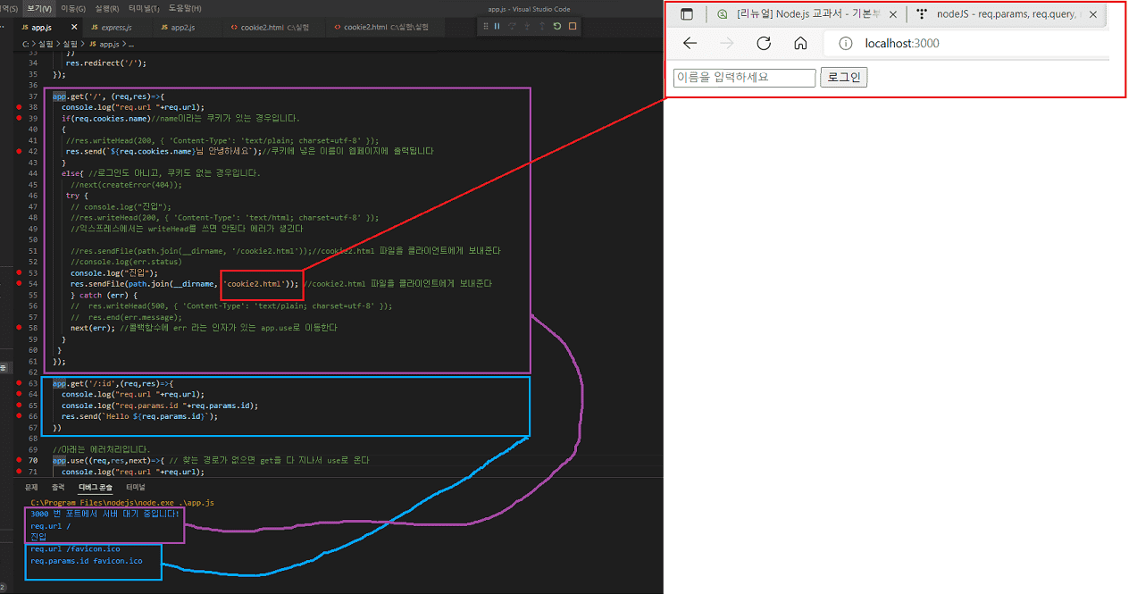 req.url이 처음에는 / 일 때, cookie2.html이 웹페이지에 나온 다음에