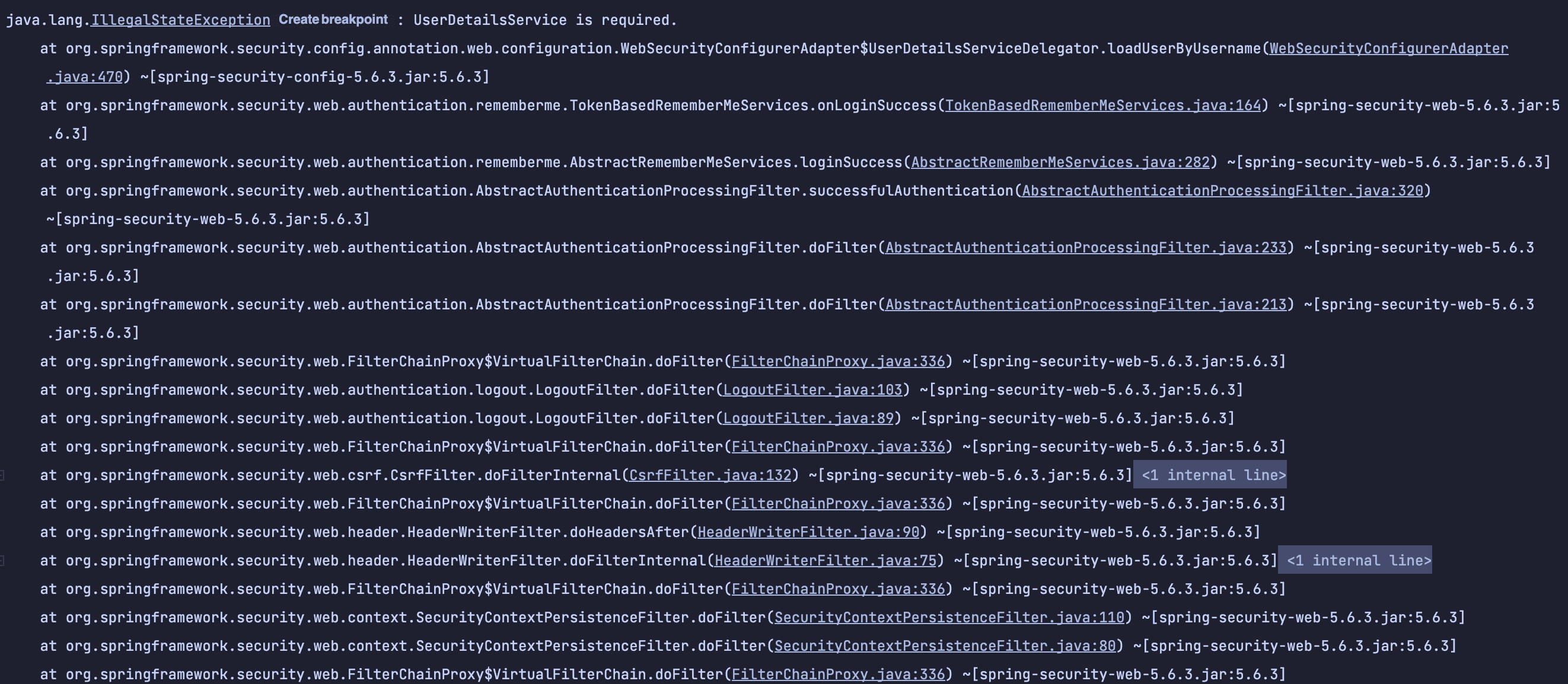 의존성 주입을 받음에도 불구하고 Remember me on this computer. 체크박스를 클릭하고 로그인시 아래와 같은 에러가 발생합니다.