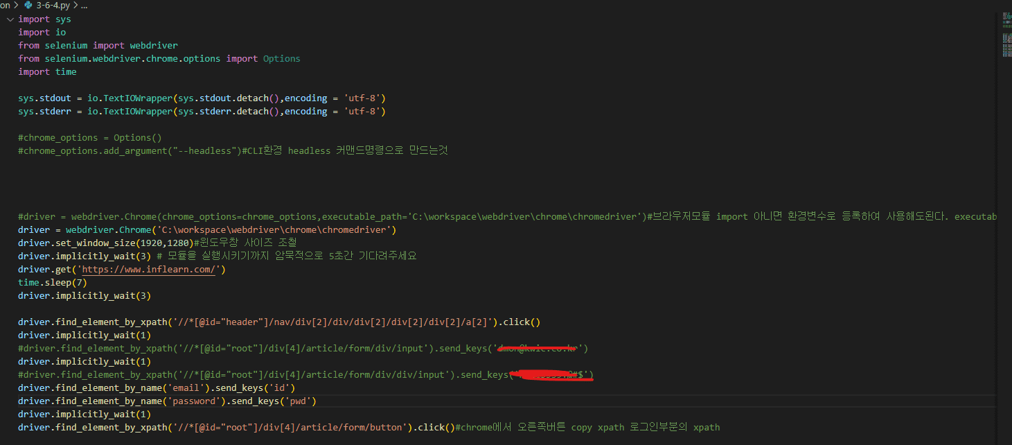 ps. send_key로 보낸 value는 임시로 기재한것입니다 실행할때는 본 아이디와 비밀번호를 기재하였습니다.