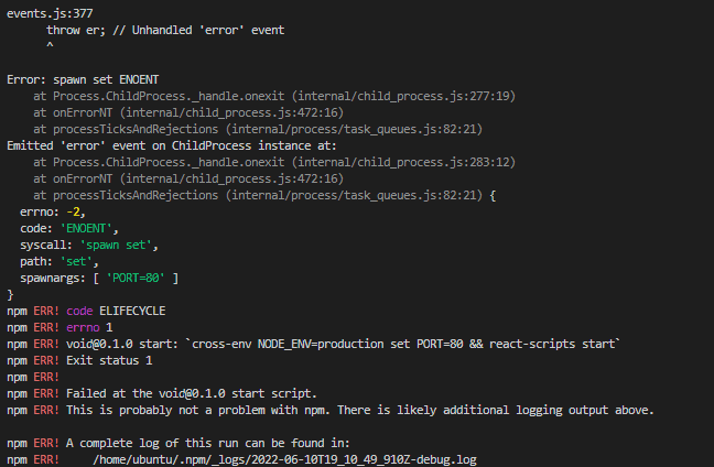 sudo NODE_ENV=production PORT=80 react-scripts start