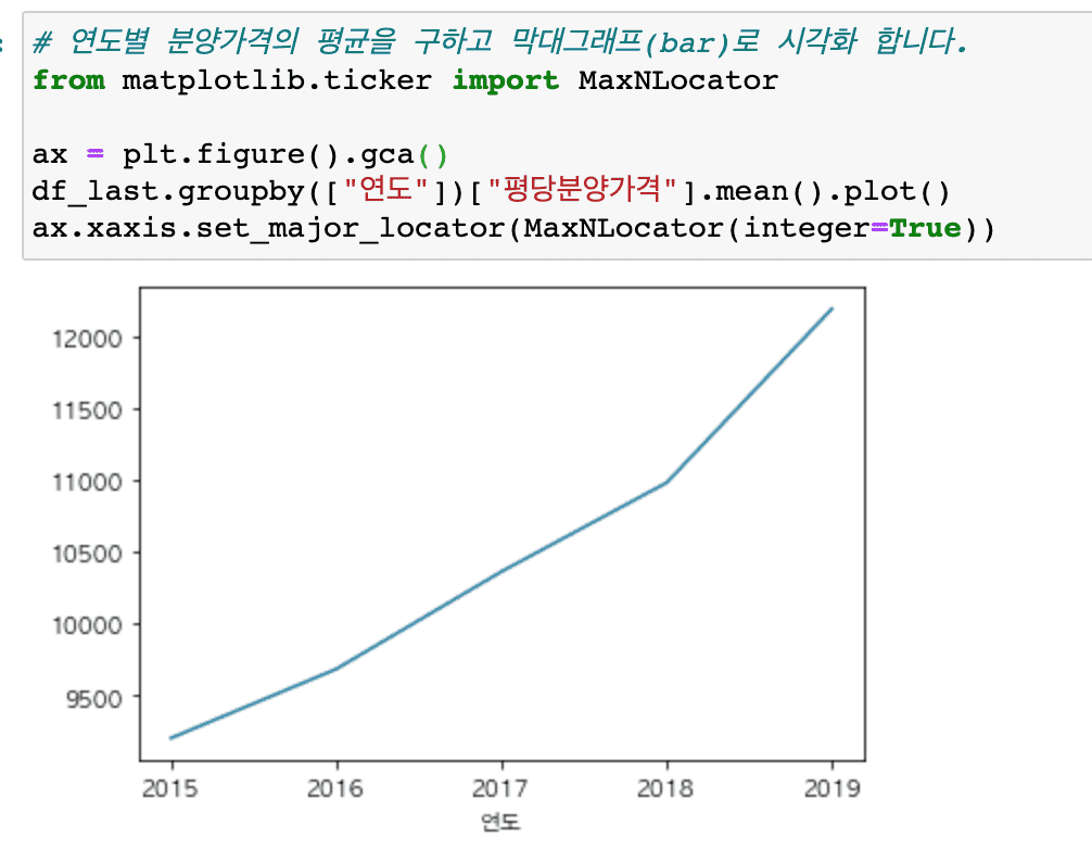 matplotlib 의 ticker 를 사용해서 x축의 값을 integer 로 표시하게 하는 방법입니다.